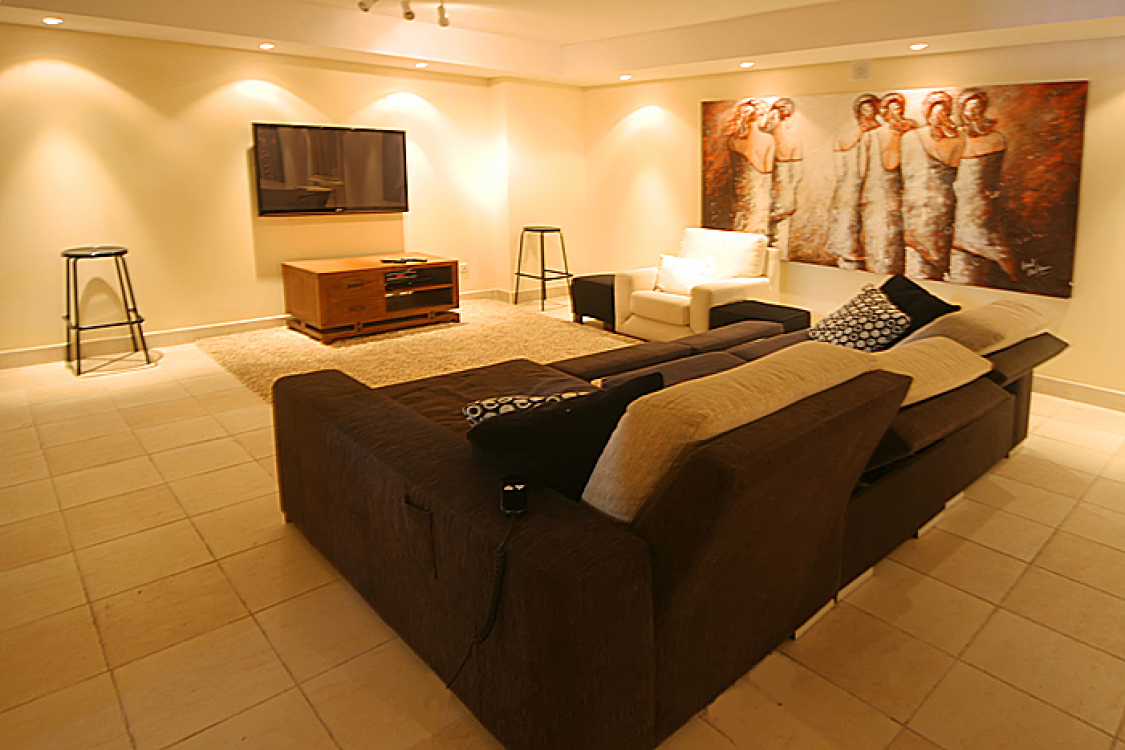Nivel inferior tiene una gran TV / sala de relax con sofás, TV y zona de comedor para 6 personas. Dos habitaciones sencillas con camas individuales y todos compartiendo un cuarto de baño con plato de ducha.