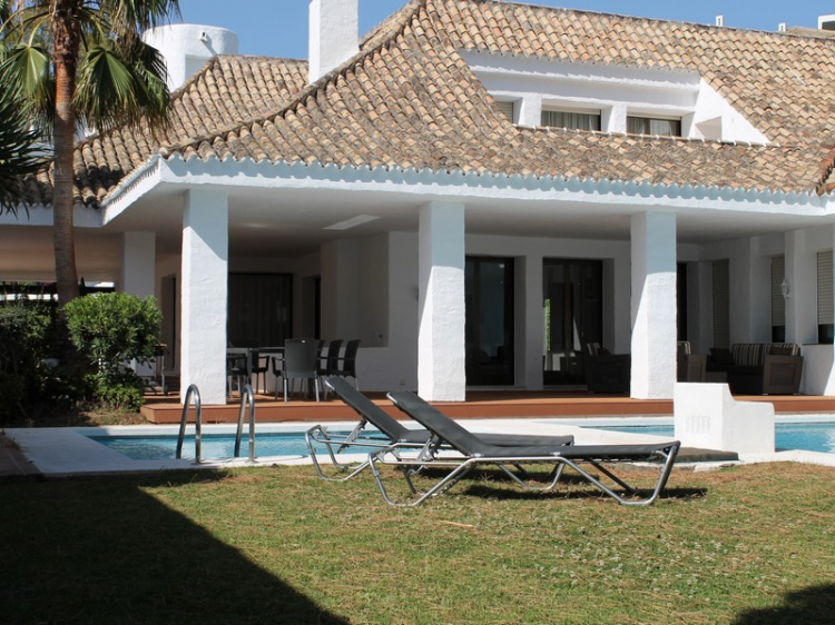 Hermosa villa está situada en una de las mejores zonas de Marbella, Puerto Banús.La idea detrás del diseño de interiores es crear una sensación de relajación y los diseñadores logró alcanzar esto perfectamente. Combinan estilo contemporáneo sólido.